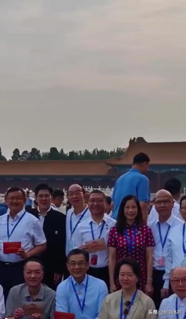 更逗的是,中国香港奥委会副会长霍启刚也受邀参加了本次阅兵观礼活动,他也晒出了自己在现场和其他代表的合影,而姚明正好从身后走过,也被动完成了一次同框。