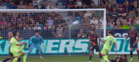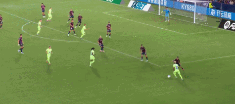 第45+6分钟,巴尔德手球送点,莫拉莱斯主罚命中,巴萨0-2