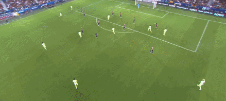 第42分钟,巴萨后防得小心了,莱万特头槌稍稍偏出