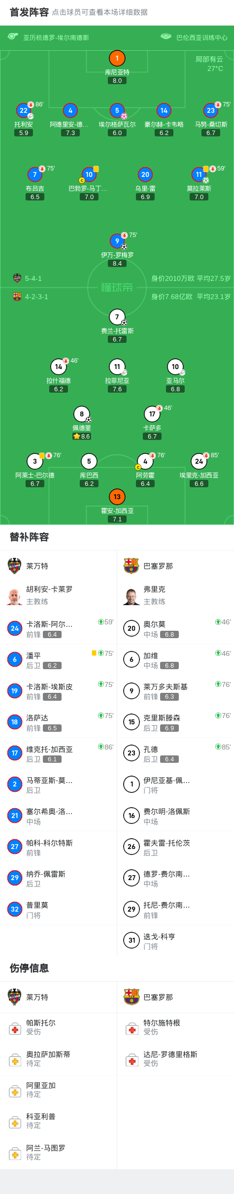 第76分钟,巴萨换人,莱万和克里斯滕森替补登场